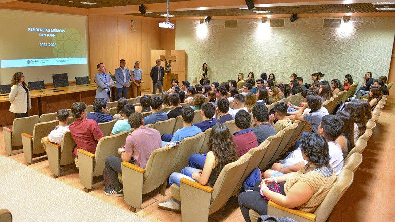 Al finalizar, la referente de Residencias del Ministerio de Salud, Valentina Baistrocchi, acompañada por la directora de Recursos Tecnológicos e Innovación en Salud, Natalia López, explicó detalladamente el sistema de residencias médicas 2024, brindando a los estudiantes información clave sobre los requisitos y el proceso de inscripción para las residencias provinciales.