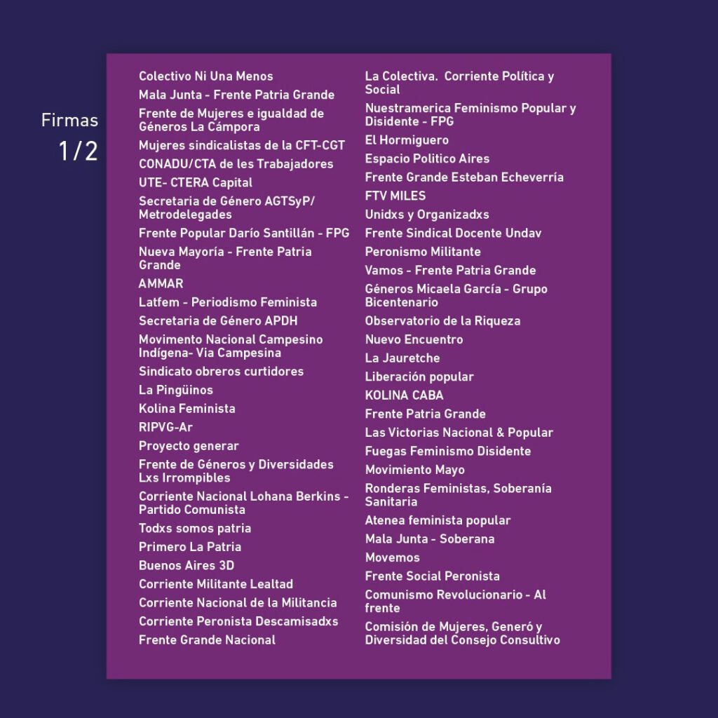 Además, el Manifiesto repudia la violencia que ha sufrido la vicepresidenta de la Nación, Cristina Fernández de Kirchner.