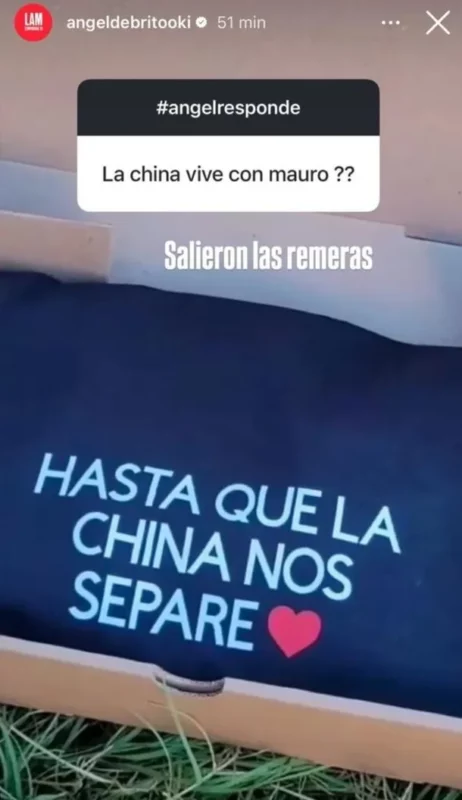 El conductor Ángel de Brito fue quien reveló la existencia de estas curiosas prendas a través de sus redes sociales. «Ya salieron las remeras», comentó mientras compartía una foto de una camiseta con la leyenda: «Hasta que la China nos separe».