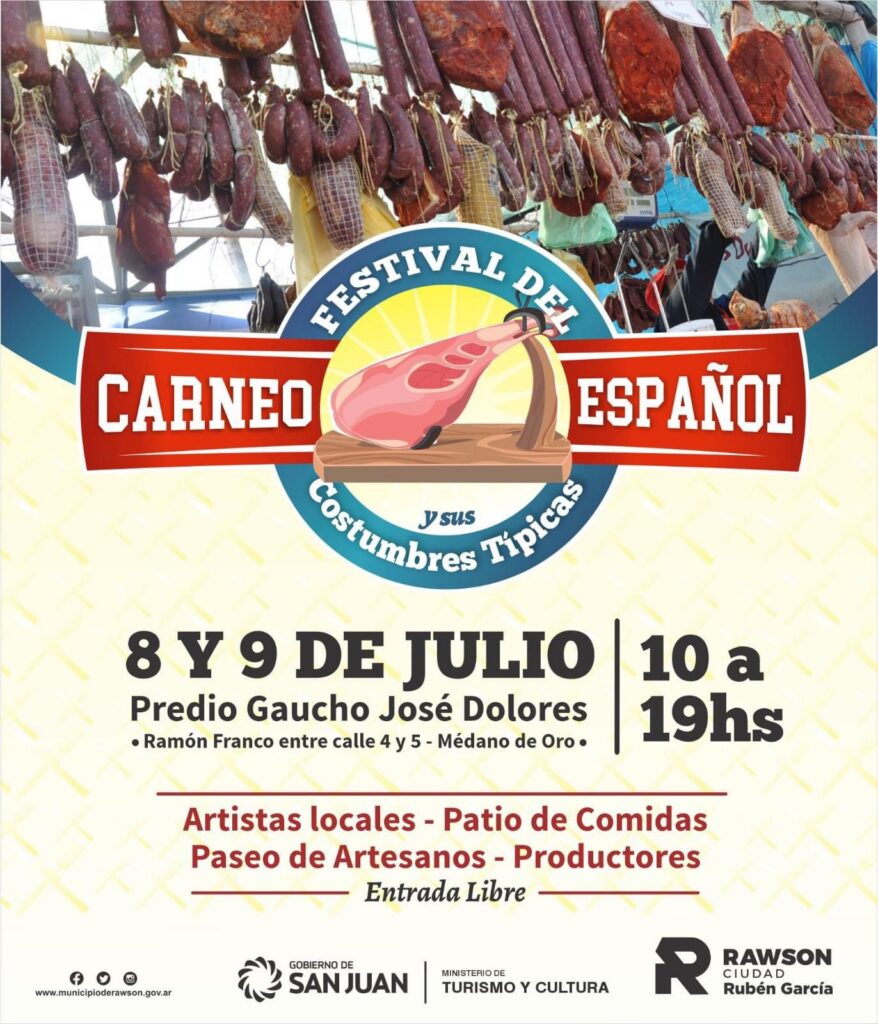 Desde la Municipalidad de Rawson publicaron la fecha para una nueva edición de uno de los eventos más esperados en San Juan. El Festival del Carneo Español, en el cual cada año se ofrecen los mejores productos porcinos y comidas típicas de la provincia.