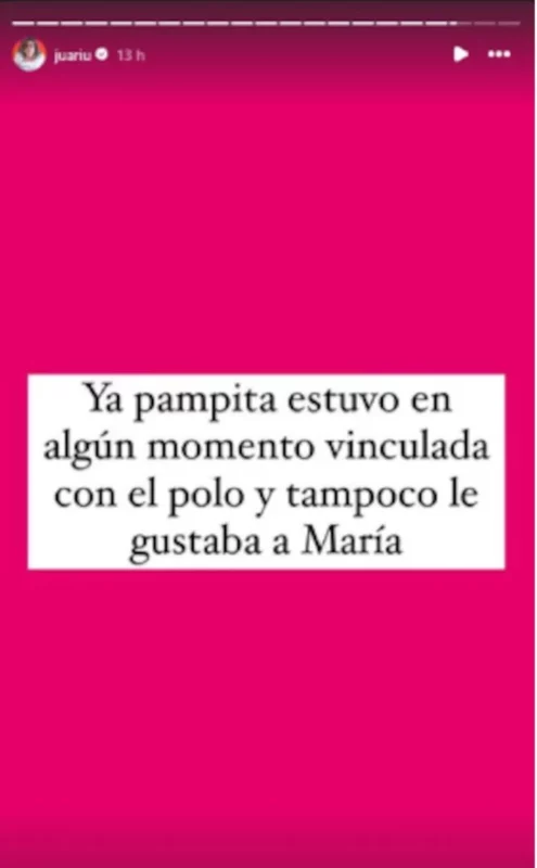 Un segundo posteo de María volvió a causar sorpresa, escribiendo “It’s a Monton. Solo para entendidos”. ¿Lo extraño? Apenas unos minutos antes Pampita posó en una foto junto a su novio, Zaira y Pieres con el trofeo tras el triunfo de La Natividad en el Abierto Argentino de Polo. Nuevamente Juariu intuyó que la jurado del Bailando podría ser la apuntada. Todo esto se sumaría a una historia de años atrás, cuando la ex de Benjamín Vicuña había estado vinculada al mundo del polo pero a la esposa de Cambiaso no le había gustado nada.