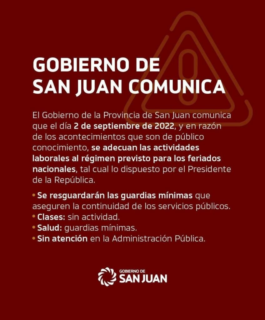 Por su parte, la Cámara de Comercio de San Juan emitió un comunicado, dando a conocer que el comercio sanjuanino abrirá sus puertas con normalidad.