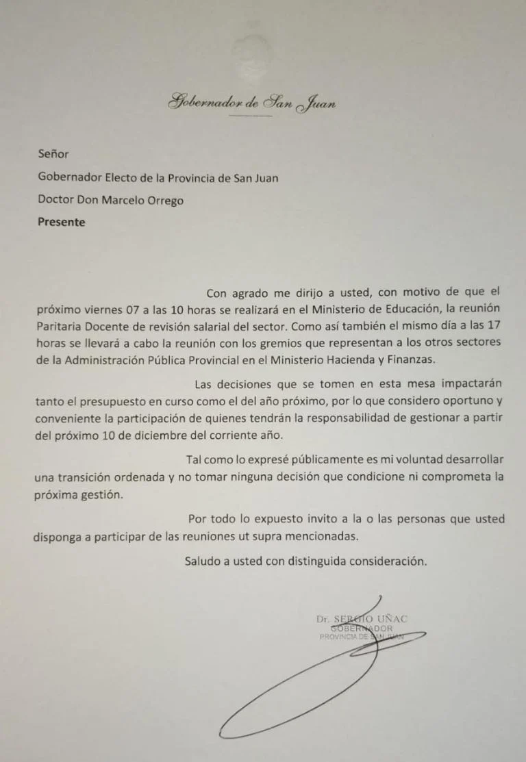 La nota remarca que «las decisiones que se tomen en esta mesa impactarán tanto en el presupuesto en curso como en el del año próximo, por lo que considero oportuno y conveniente la participación de quienes tendrán la responsabilidad de gestionar a partir del próximo 10 de diciembre del corriente año».